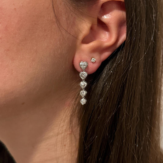 14K Solid Gold Dangling Lab Grown Heart Diamond Earrings