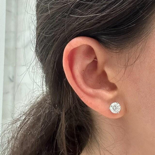 Lab Grown Diamond Earrings | 3 CTW Round Certified | 1.5 CT Each Stud | 14K Gold Earring Studs | Gift for Her Wedding/Birthday/Anniversary