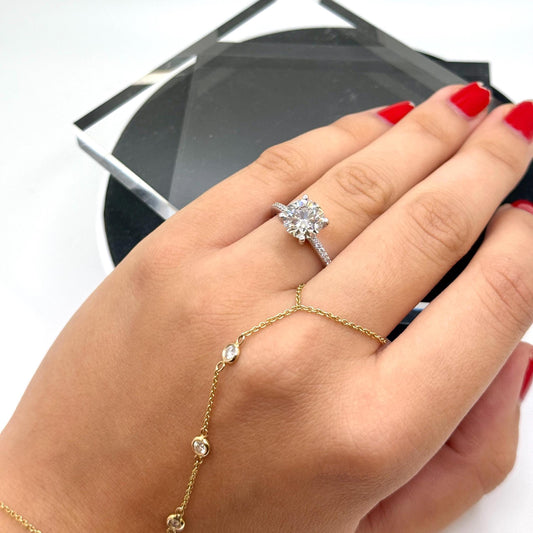 Pavé Engagement Ring 2 CT Round | Certified Lab Grown Diamond | 14K Gold Solitaire | Gift for Her Proposal/Wedding/Birthday/Anniversary
