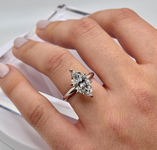 Marquise Engagement Ring 2 CT | Certified Lab Grown Diamond | 14K Gold Solitaire | Gift for Her Proposal/Wedding/Birthday/Anniversary