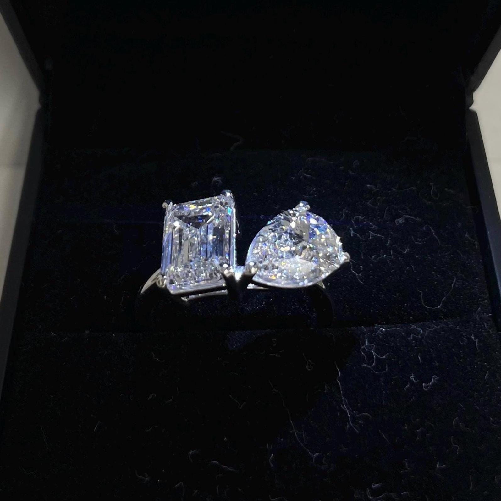 14K Gold Toi Et Moi Ring: Emerald & Pear Lab Grown Diamonds