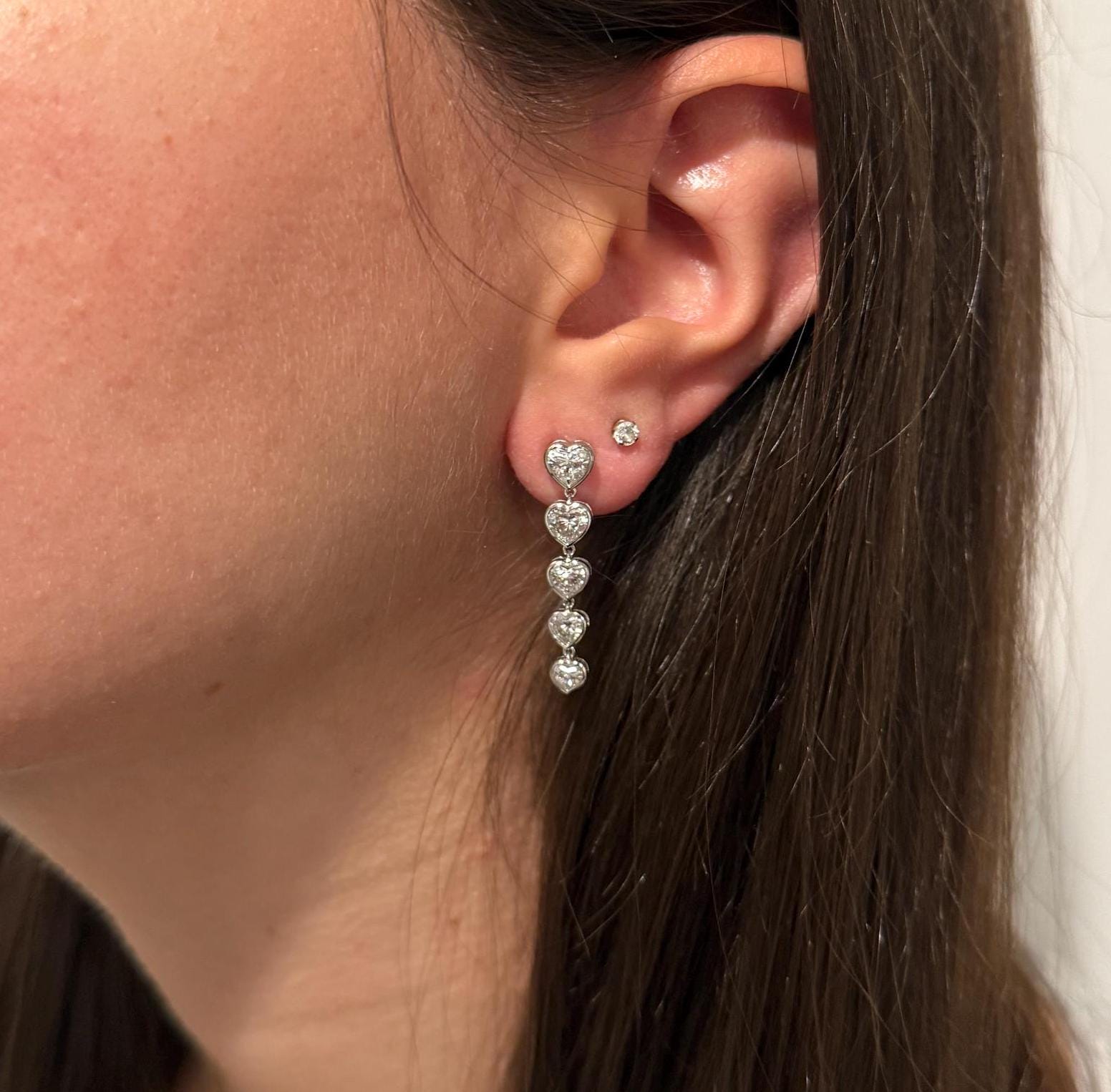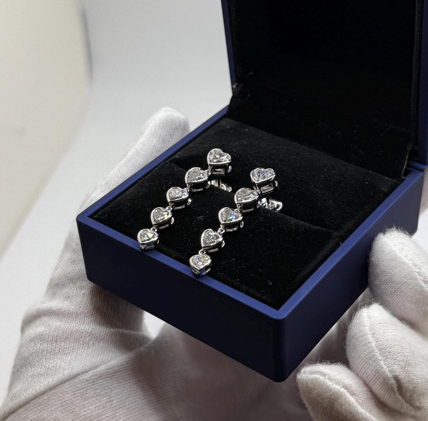 14K Solid Gold Dangling Lab Grown Heart Diamond Earrings