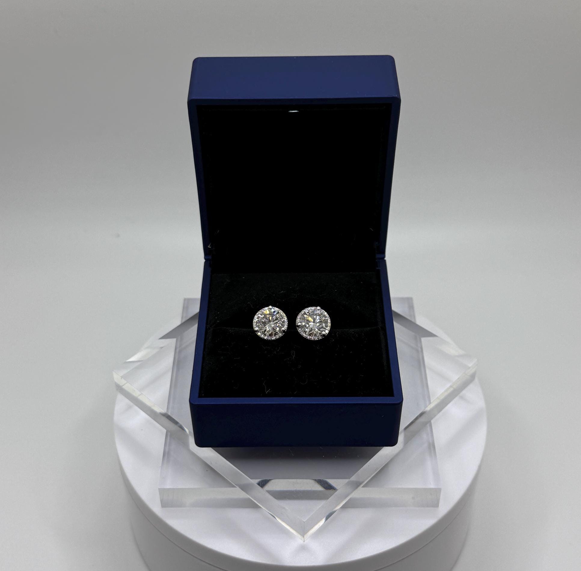 Diamond Halo Earrings, 4 CTW Round Studs, 14K Gold Lab Grown Earring Studs, 14K Solid Gold, Certified Real Lab Created Earrings, 2 CT Each