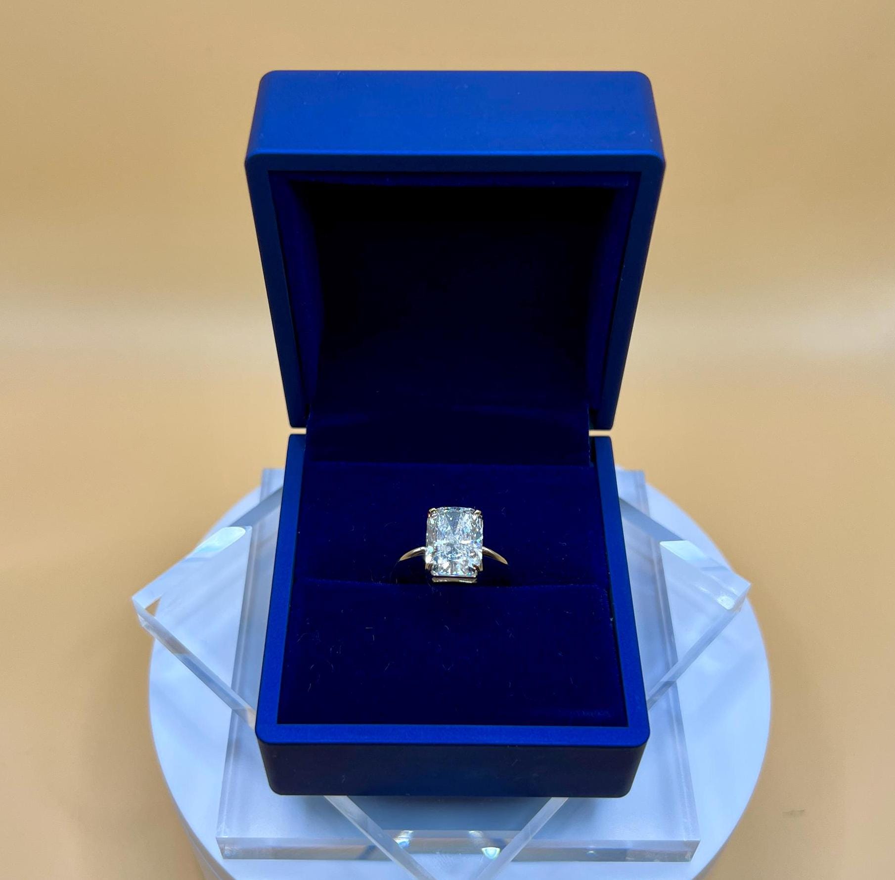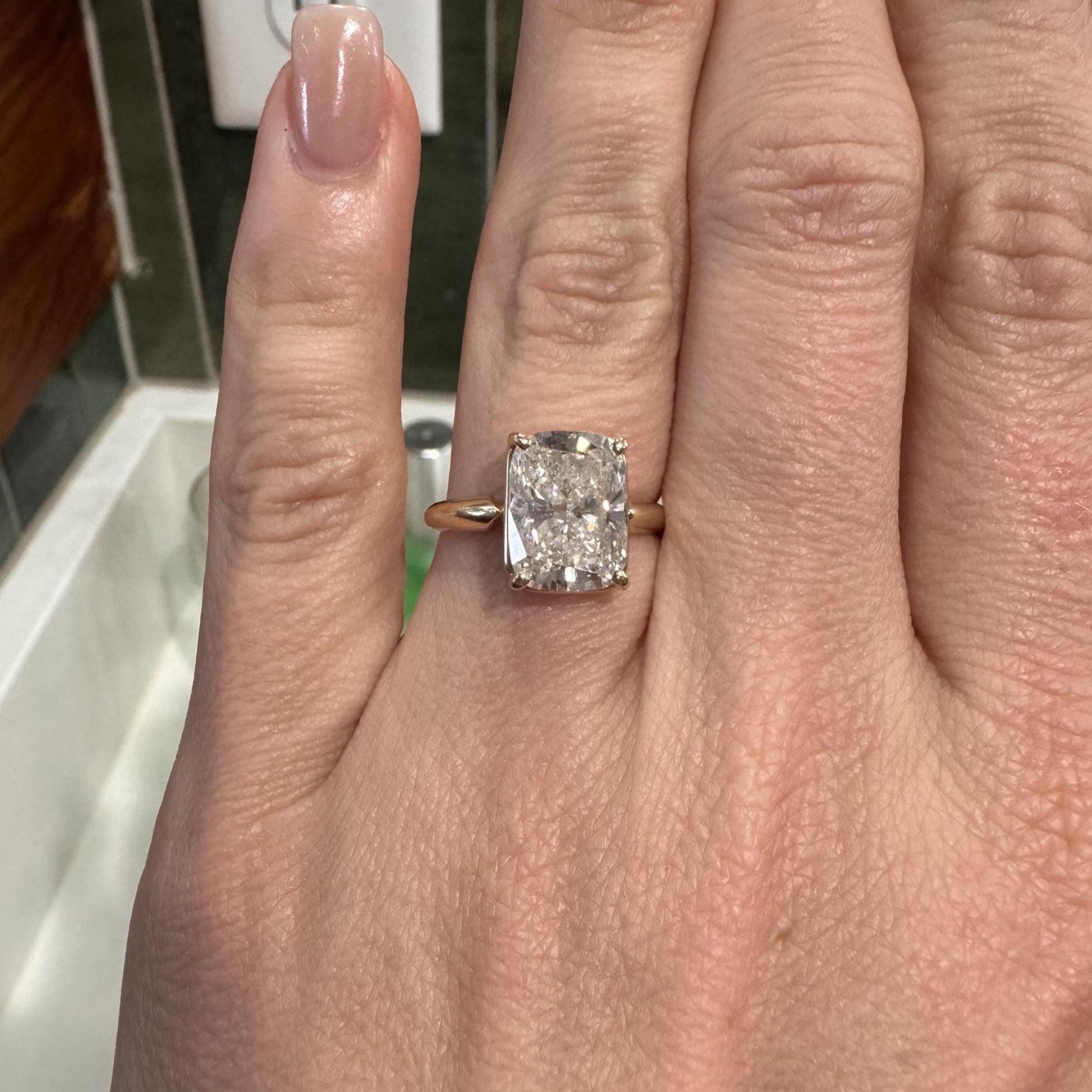 Stunning 4 carat elongated cushion cut lab grown diamond in 14K gold. Certified, ethical, and crafted for a timeless proposal she'll love.