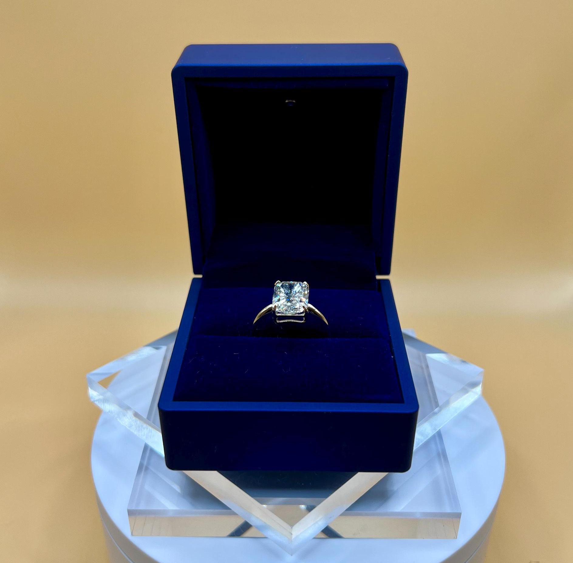 Stunning 5 carat elongated cushion cut lab grown diamond in 14K gold. Certified, ethical, and crafted for a timeless proposal she'll love.