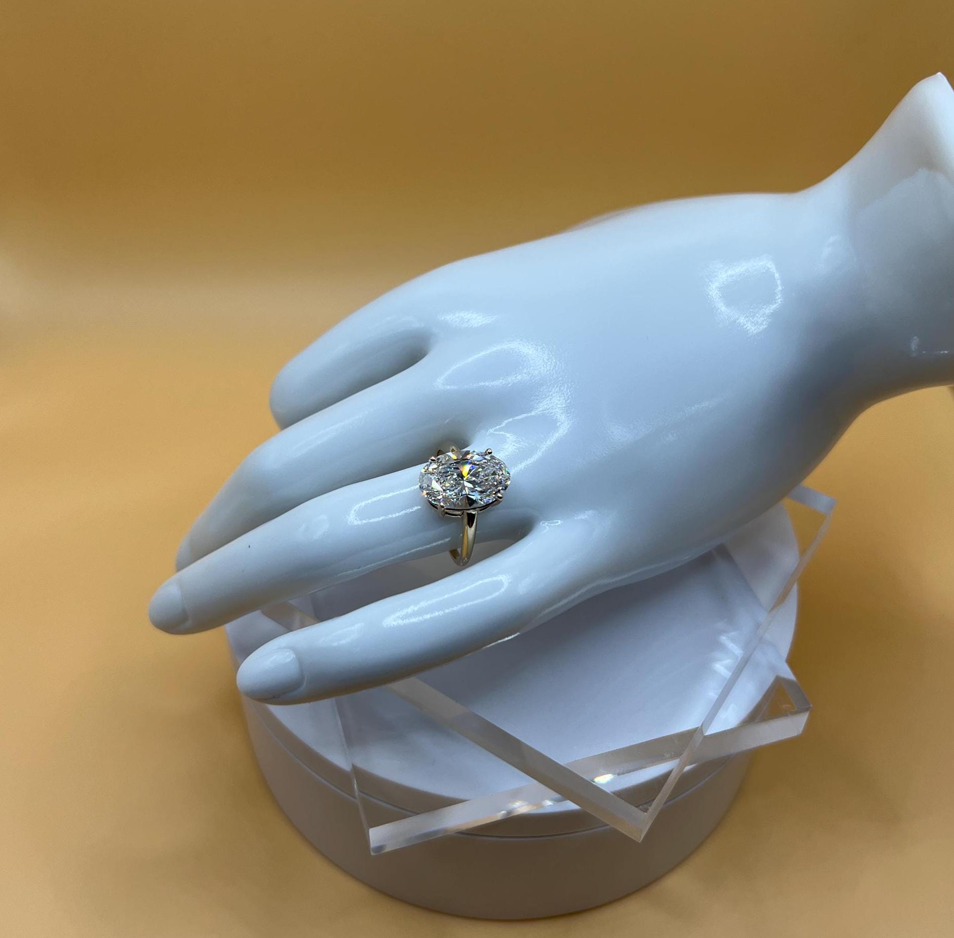 Timeless 6 carat oval lab grown diamond engagement ring in 14K gold. Certified and ethical—crafted for your perfect proposal or gift.