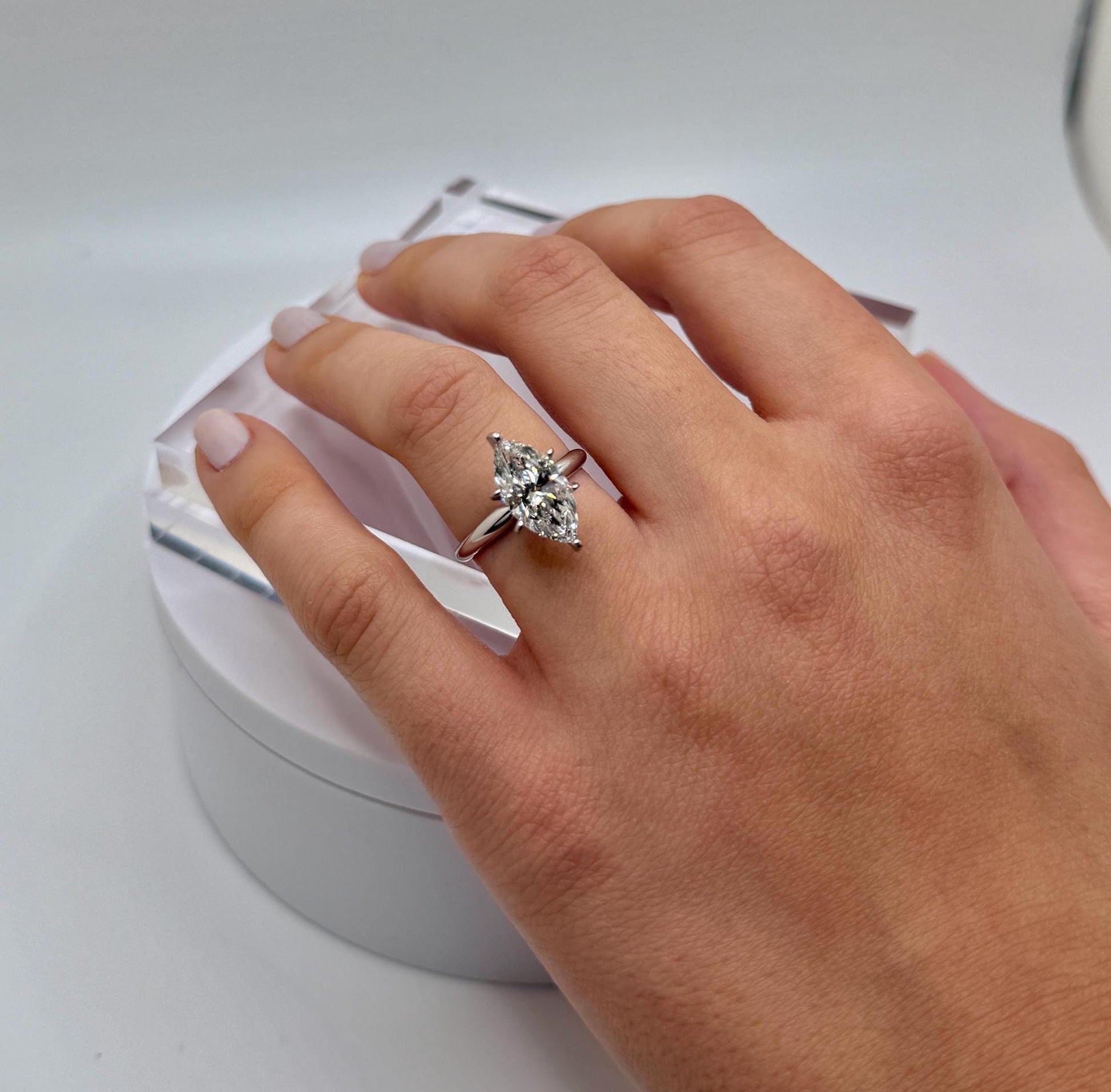 Marquise Engagement Ring 4 CT | Certified Lab Grown Diamond | 14K Gold Solitaire | Gift for Her Proposal/Wedding/Birthday/Anniversary