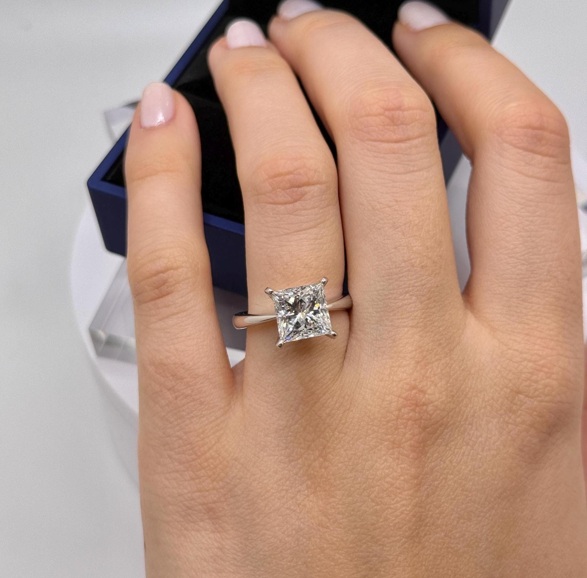 Princess Cut Engagement Ring 3 CT | Certified Lab Grown Diamond | 14K Gold Solitaire | Gift for Her Proposal/Wedding/Birthday/Anniversary