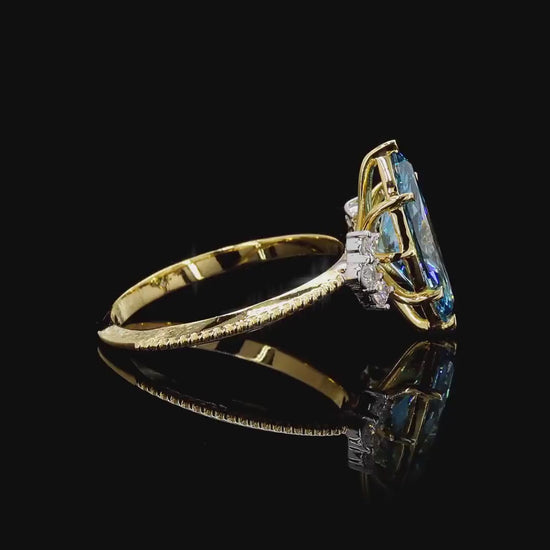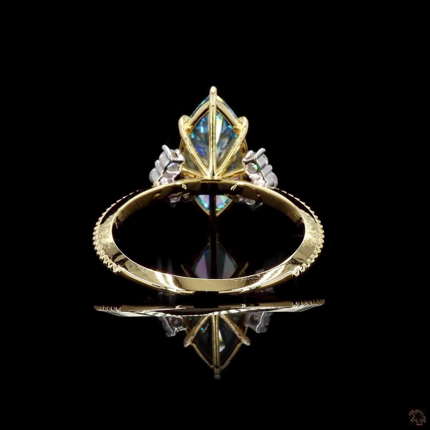 RARE Blue Marquise Engagement Ring, Lab Grown 2 CT Diamond Ring, 18K Gold Solitaire Ring, Certified Real Lab Created